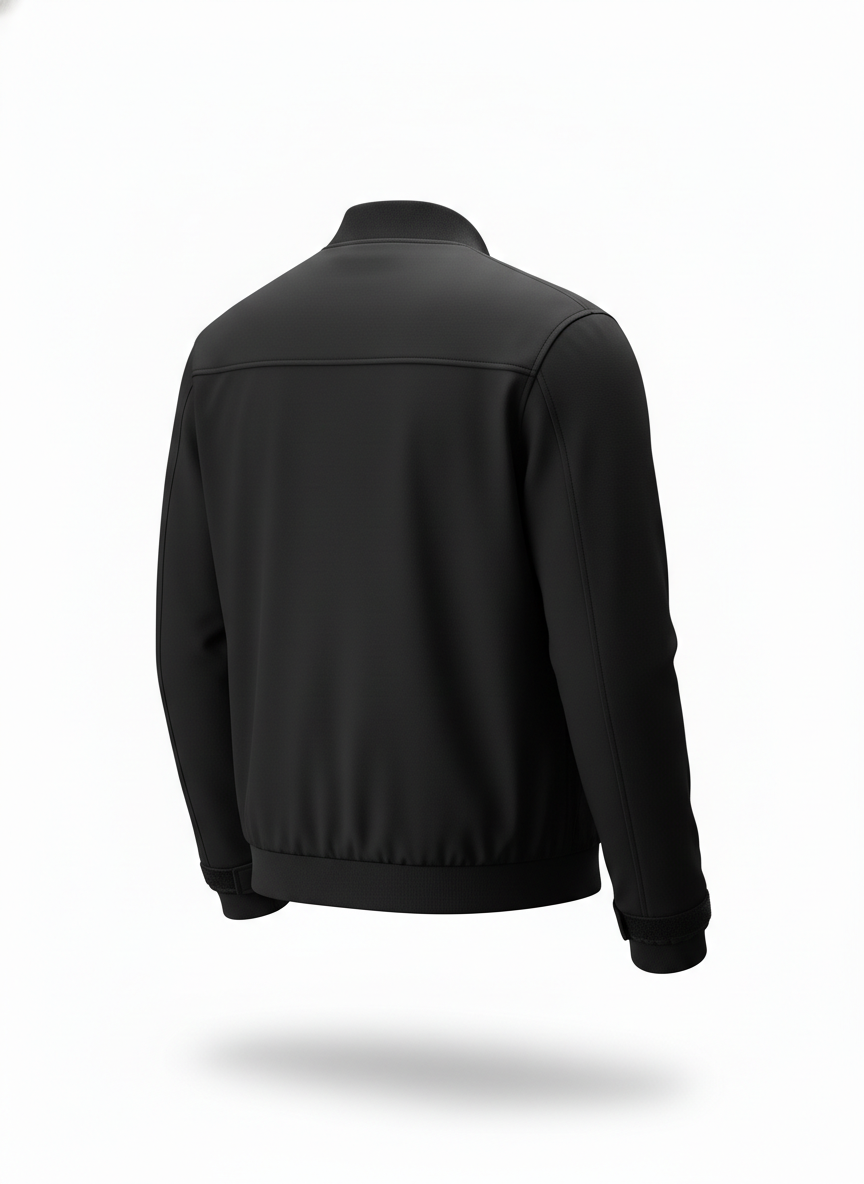 This men's jacket has a contemporary cut with defined shoulders and a full front zipper closure and black color. It comes with two side pockets, one internal chest pocket, and adjustable cuffs for a precise fit. The jacket is fully lined and has reinforced stitching along the seams for added strength. Available in classic tones, it provides flexible styling choices and a neat, structured appearance.