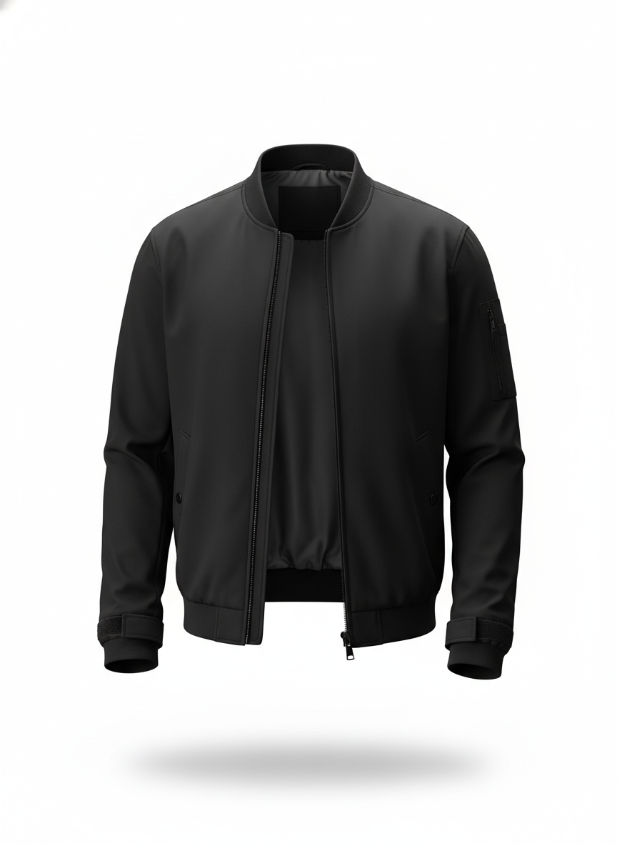 Men's Black Casual Bomber Jacket with Pockets